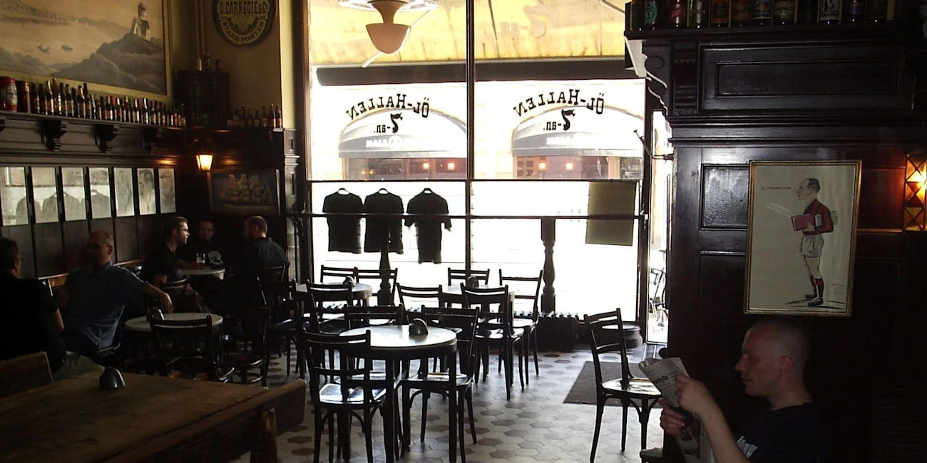 Opened in 1900 in the square around Gothenburg's Saluhallen market hall, where the traders once enjoyed 14 beer halls and four brandy and punch taverns. "Beer Hall Number 7" is the only one that survived the Prohibition years of the Bratt System (1917-1955) where beer was rationed, alongside other alcohol stronger than 3.7% ABV. Despite a fire in 1996, the original furniture is mostly intact, including the neo-Renaissance style dark brown wood paneling and marble tables whilst, in keeping with the old licensing rules, they only serve ale.